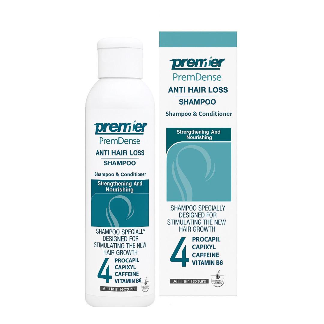 ● شامبو ضد التساقط من بريميير تحتوي تركيبته الفعالة على البروكابيل – كابيكسيل – كافيين – النخاع والتي تنشط الدورة الدموية لفروة الرأس وتغذي بصيلات الشعر مما يجعل الشعر صحي، لامع وقوي من الجذور إلى الأطراف.